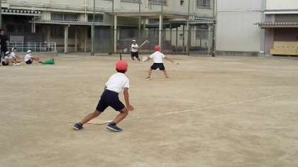 ピッチャーが投げたボールを打つのではなく、止まっているボールを打つので、打つ楽しみをみんなが味わうことができます。ルールも工夫されていて、みんなが楽しめるようになっていました。