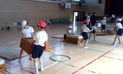 自分たちでとびばこの準備も上手にできる1年生!かっこいいね!