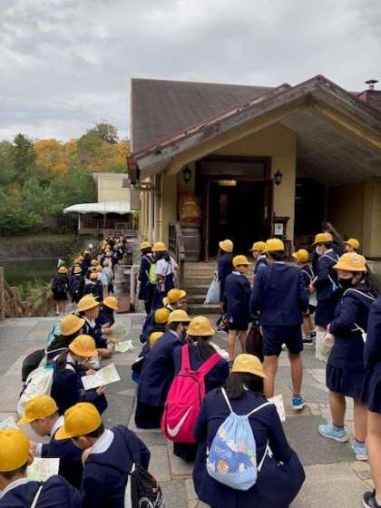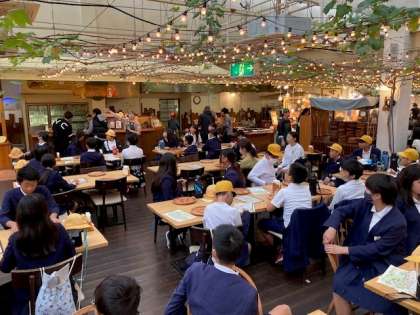 もくもくファームに到着です。昼食の後は、ウインナー作りの体験が待っています。