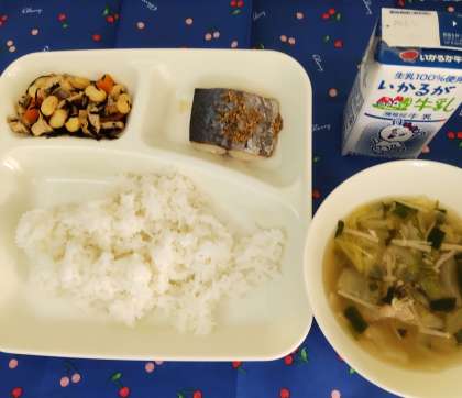今日の給食の「すまし汁」と「大豆の煮もの」には、けずりぶし(さばぶしとにぼしを混ぜたもの)とこんぶでとっただしを使っています。