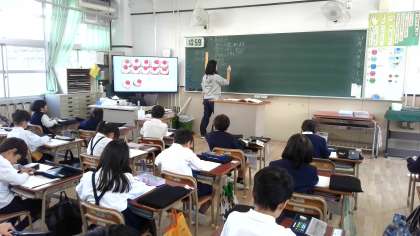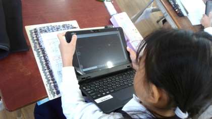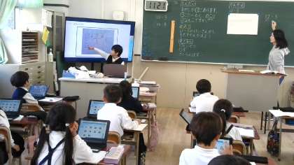 書いたノートをタブレットで撮影し、前で発表もがんばっていました。