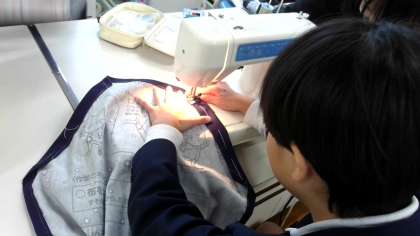 自分でつくったエプロンで、調理実習をするのが楽しみですね。