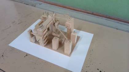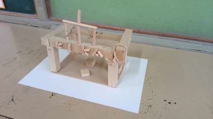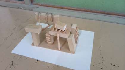 のこぎりで木を切って作った作品です。
