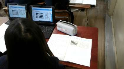 同じ数のまとまりに注目してかけ算をつかって求めていました。