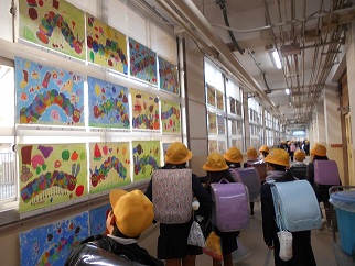 教室前の廊下に、図画工作の作品を掲示しています。(1年生は、職員室前の廊下に掲示しています。)子どもたちの力作です!ぜひご覧ください。