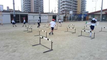 大なわでは、跳ぶタイミングを「はい」「はい」と声をかけ合って練習していました。
