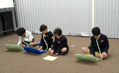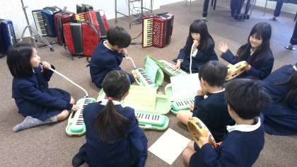 「メリーさんのひつじ」をそれぞれのパートで練習した後、グループごとに発表していました。