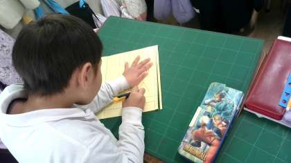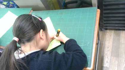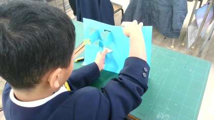 カッターナイフで切り込みを入れて、いろんな形のまどを作っていました。