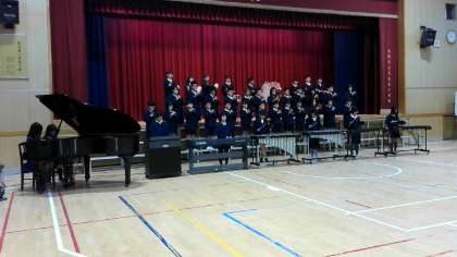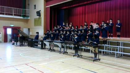 「茶色のこびん」の合奏を1組・2組合同で演奏しました。