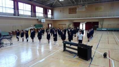 とても大きな声でのよびかけや、息のあった合奏で、お祝いの気持ちが伝わってきました。