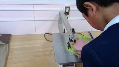 電動の糸のこを使って切るのですが、なかなか思いどおりに切るのは難しいです。