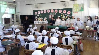 1年生は、はじめのうちは6年生が給食を運んできてくれます。
