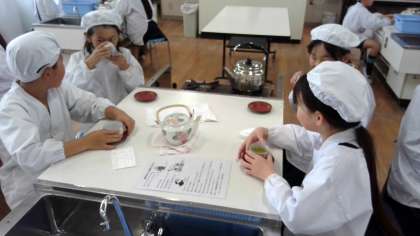 今日は、第1回目の調理実習!湯をわかしてお茶を入れました。