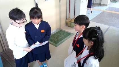 どこにどんな部屋があるのかを2年生が1年生にやさしく教えてあげていました。