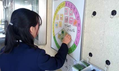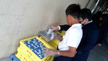 給食委員会は、献立の放送をしたり、給食の後片付けや栄養黒板を書いたりしています。