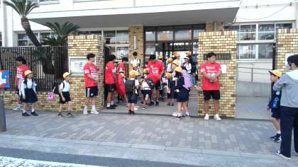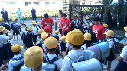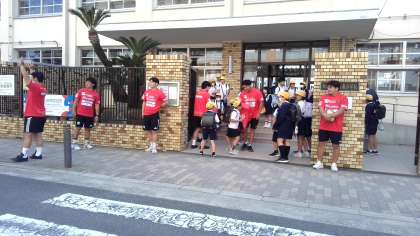 今日は、トップアスリートによる「夢・授業」で、レッドハリケーンズ大阪の方が学校に来てくれました。