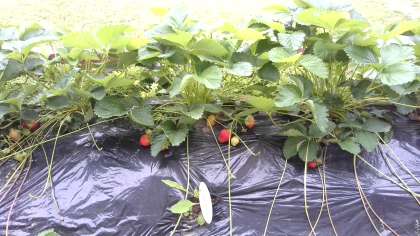学習園にたくさんイチゴができていましたよ。