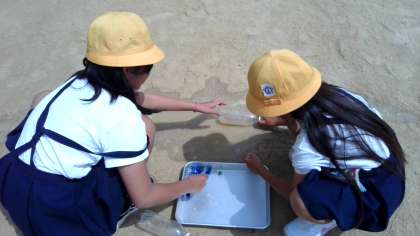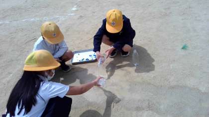 「水の流れと地面のかたむきには、どんな関係があるか」を実験しました。