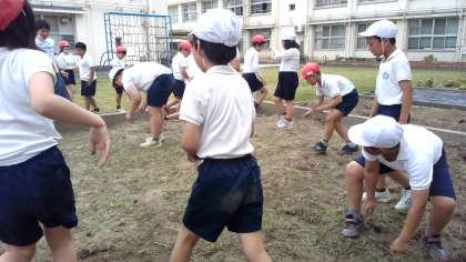 たくさん草が生えていたのですが、赤組と白組対抗で草抜きをしてきれいになりました。