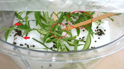 エサをたくさん食べていて、葉脈(葉のすじ)だけが残っています。