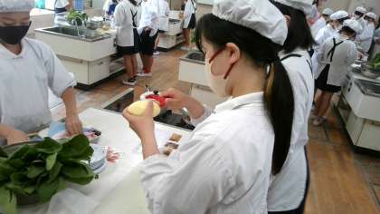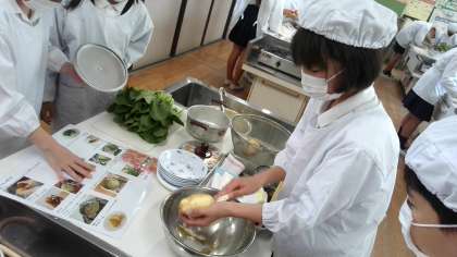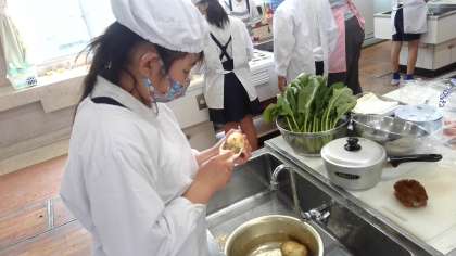 ほうれんそうのおひたしとゆでいもの調理実習をしました。