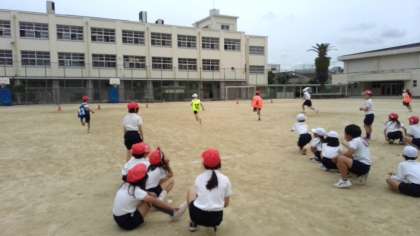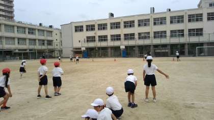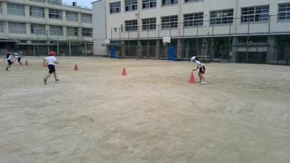 リレーをしました。ふつうに走るだけでなく、スキップしたり、横歩きをしたりもしました。