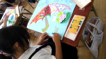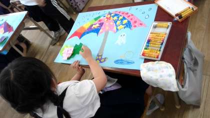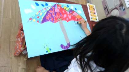 まわりにてるてるぼうずや、かたつむり、雨などをかきました。