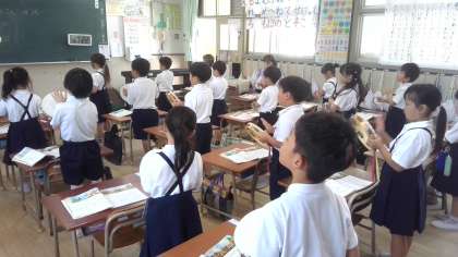 「たん、たん、たん」「たん、たた、たん」のリズムを上手に打つことができました。