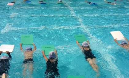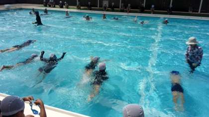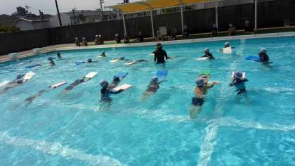 小学校の大きなプールにも慣れて、じょうずに浮かぶことができていました。