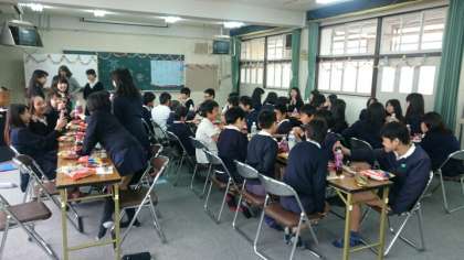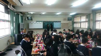 6年生のお楽しみの行事の一つ。茶話会を多目的室で行いました。