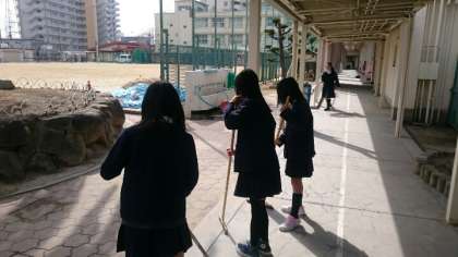明日の卒業式に備えて在校生代表の5年生が清掃活動や講堂の準備に勤しんでいました。