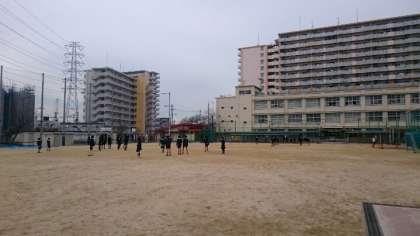 6年生は、4時間目に、1組2組とも運動場に出て、球技をしました。