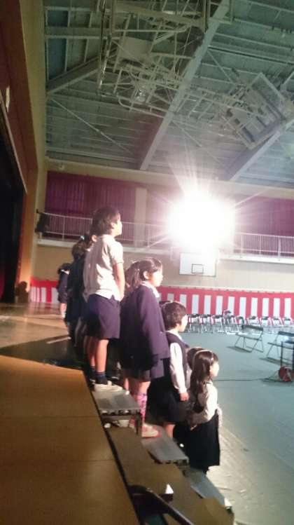 修了式が終わった後、講堂に残って、最後の練習に取り組みました。