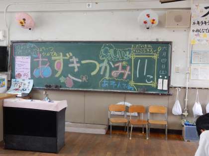 3年1組はあずきつかみです。お箸であずきをつかむゲームで、お箸の持ち方の器用さが試されるゲームでした。