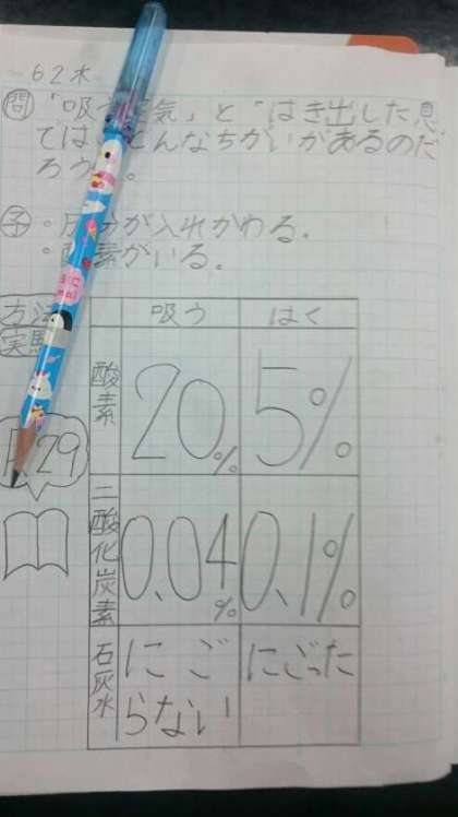 石灰水を使って調べたりしました。