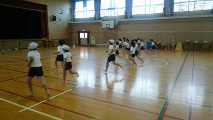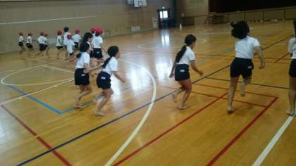 講堂でシャトルランをしました。