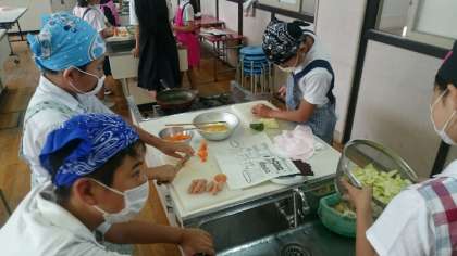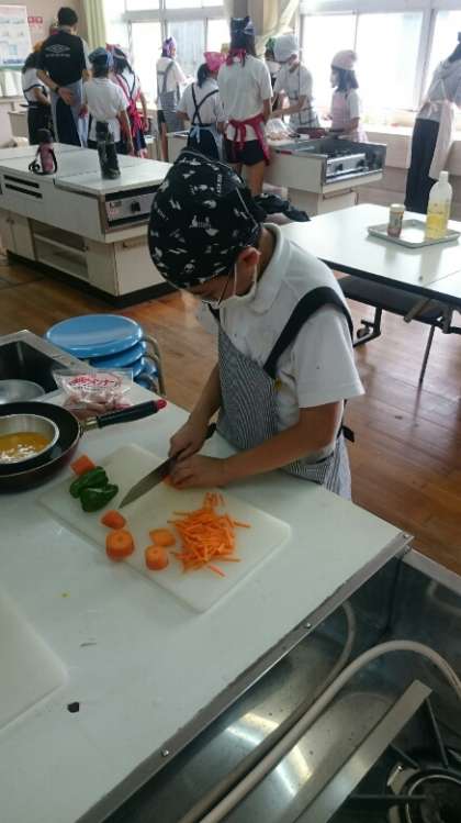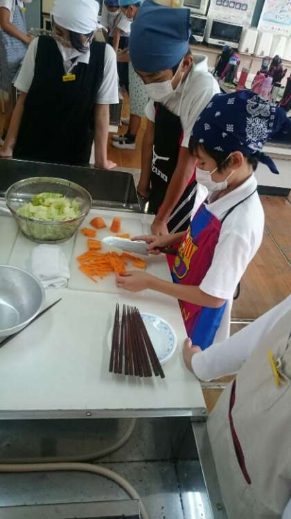 ニンジンやキャベツを切るのに恐る恐るしている子や