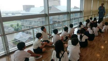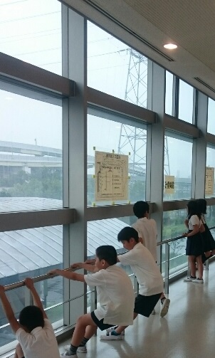地下鉄で喜連瓜破まで行き、そこから、30分近く歩きました。このあたりからも、少し高いところに行けば青い煙突が見えます。その高さが120mということも教えていただきました。