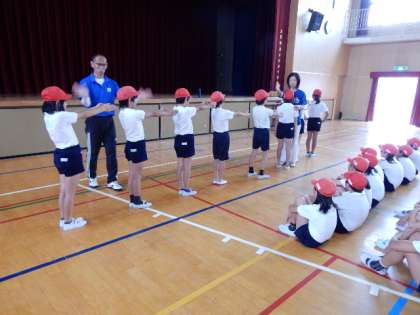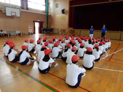 長吉六反中学校から体育先生に来ていただき授業をしていただきました。