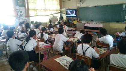 4年生では、消防署やごみ焼却場など私たちの生活にとって欠かせない公共の施設について学習をしています。今学習しているのは、浄水場です。大阪の水道水は、高度な処理をしているため、他のところよりもおいしいといわれています。