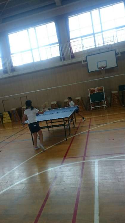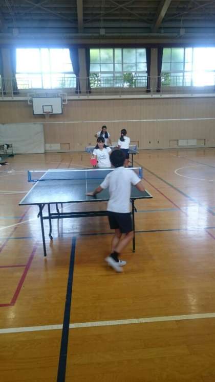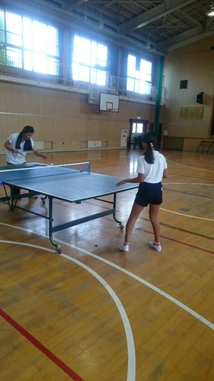 スポーツ交流会に参加する人が、プール水泳が終わった後、体育館で練習に励んでいます。