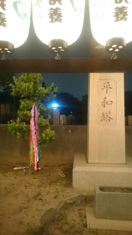 おりづる集会で子どもたちが作ったおりづるを瓜破霊園の平和塔に奉納しています。