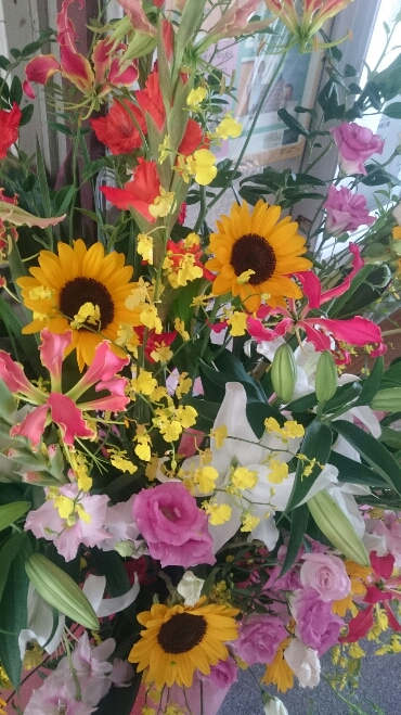 日曜日に本校で敬老会が催されました。 きれいなお花をいただきました。 玄関に飾っています。
