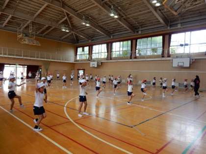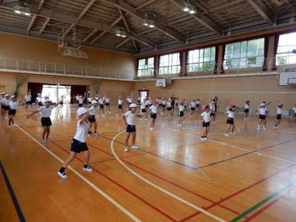 今日3年生は3,4時間目に運動会の練習をしました。運動場では綱引きとリレーの練習、体育館では踊りの練習をしました。暑い中頑張っていました。