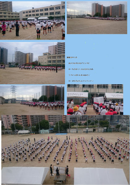 今日の児童集会は、運動会に向けて、紅白の並び方と、運動会のうたの練習でした。