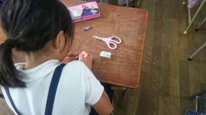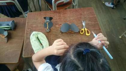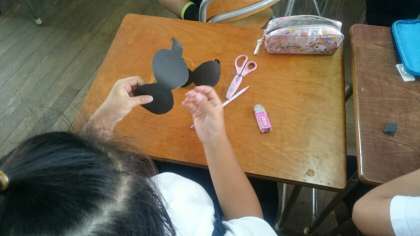 外枠ができれたら、レンズには、セロハンをはります。