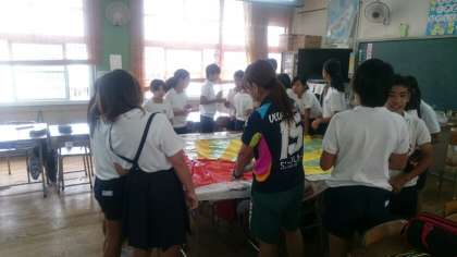 自分たちの思いを込めて旗を作成しています。