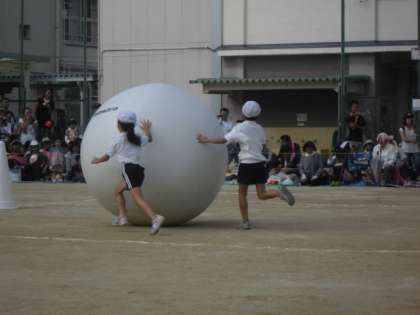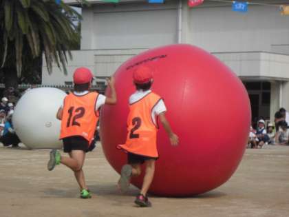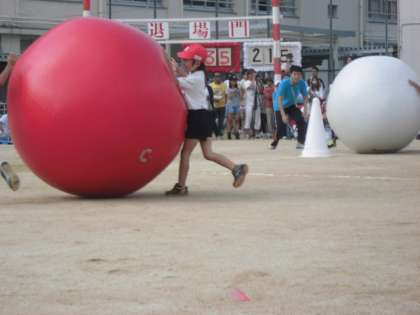 体より大きな玉を転がしました。