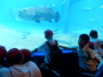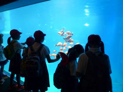 海遊館の中は色々な動物がいっぱいで児童たちは夢中になって見ていました。クイズも楽しそうに考えていました。弁当も美味しそうです。