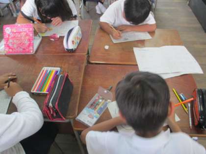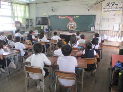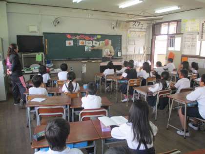 学期に一回は、1年生から4年生も英語の学習に取り組みます。